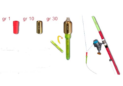 - Art 63 με δύο βάρη, 10 και 30 γρ. σε κόκκινο, πράσινο και διάφανο χρώμα