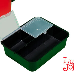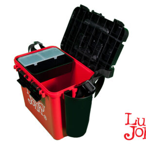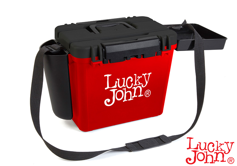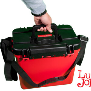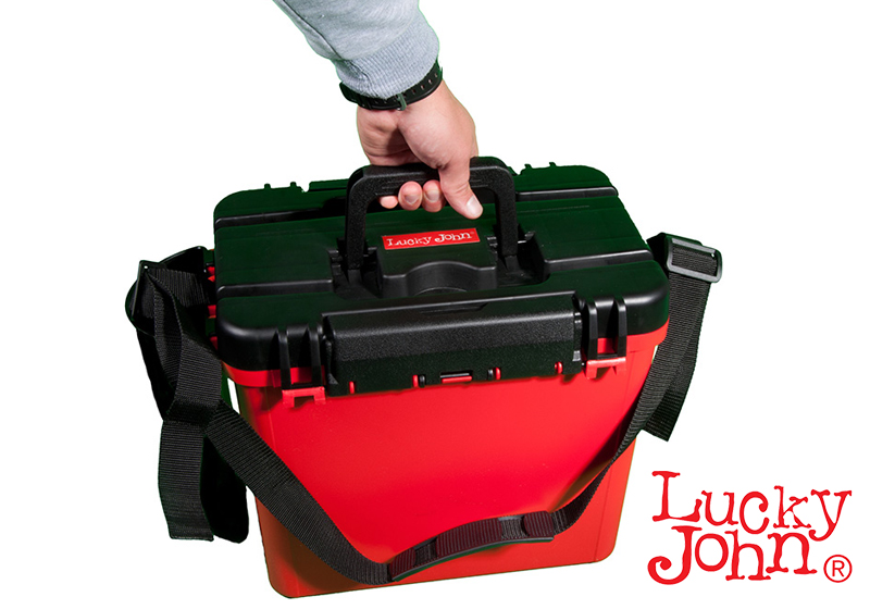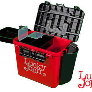 Η νέα δημιοουργία της εταιρείας Lucky John αφορά μία εργαλειοθήκη ΒΑΡΕΟΣ ΤΥΠΟΥ, εξαιρετικά ανθεκτική, με αποτέλεσμα να μπορεί να χρησιμοποιηθεί και σαν κάθισμα. Διαθέτει αρκετό χώρο στο εσωτερικό ώστε να τοποθετήσουμε αρκετές θήκες και διάφορα παρελκόμενα. Είναι εφοδιασμένη με μία πλαστική συρόμενη κασετίνα στο εσωτερικό της θήκης στο πάνω μέρος της στην οποία μπορούμε να τοποθετούμε διάφορα παρελκόμενα που χρησιμοποιούμε περισσότερο για ευκολότερη πρόσβαση. Επίσης διαθέτει τετράγωνο εξωτερικό αποσπώμενο πιατάκι για τα δολώματα/ζύμες καθώς και θήκη για το καλάμι ή οτιδήποτε άλλο στο αριστερό πλαϊνό της. Υπάρχει χερούλι εξαιρετικά ανθεκτικό κι εξίσου κατασκευασμένο από ποιοτικό υλικό για την εύκολη μεταφορά. Επίσης σε περίπτωση που θα χρειαστεί να διανύσουμε μεγάλες αποστάσεις διαθέτει ιμάντα μεταφοράς. Το καπάκι ασφαλίζει και στις δύο πλευρές και είναι κατασκευασμένο με τέτοιο τρόπο ώστε όλο το εσωτερικό της θήκης να έιναι στεγανό. Επίσης ένα μετρολόγιο χαραγμένο στο καπάκι θα μας φανεί χρήσιμο για να μετράμε παράμμαλα ή οτιδήποτε άλλο.