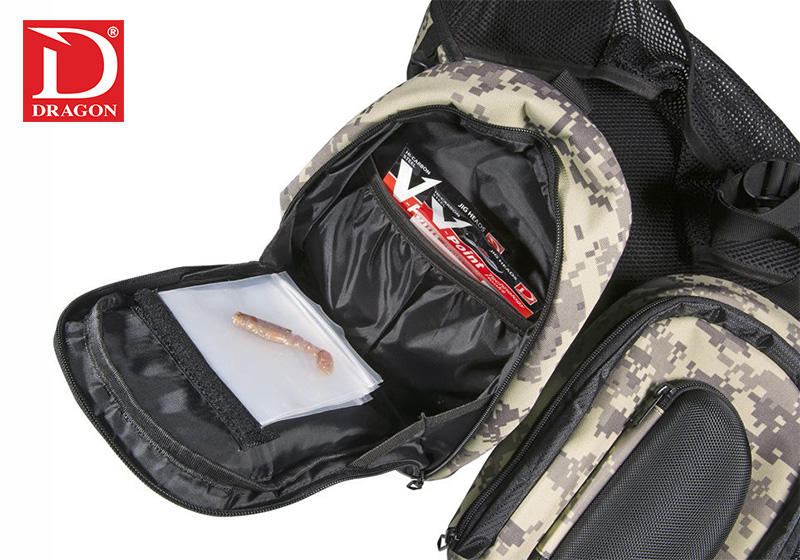 Στην δεξιά πλευρά διαθέτει άλλες 3 τσέπες: Μία μεγάλη για δεύτερη κασετίνα τεχνητών, μία εσωτερική και μία εξωτερική θήκη για γυαλιά μπροστά.