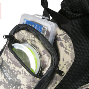 Στο πίσω μέρος έχει μια μεγάλη θήκη για πιο ογκώδη αντικείμενα ή μεγαλύτερες κασετίνες, ενώ η πρόσδεση γίνεται με δύο ρυθμιζόμενους ιμάντες που χρησιμεύουν και για την στήριξη του καλαμιού μας.