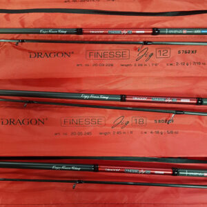 DRAGON FINESSE JIG πρόκειται για τη νέα σειρά καλαμιών της εταιρείας DRAGON για το 2024. Βασικό της χαρακτηριστικό είναι η πληθώρα από τα διαφορετικά μοντέλα από τα οποία αποτελείται. Είναι σίγουρα μια από τις πιο ολοκληρωμένες σειρές καλαμιών της εταιρείας DRAGON αφού καλύπτει την κατηγορία του LRF, HRF καθώς και Light- Medium Light spinning.