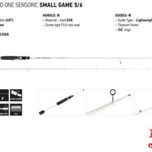 Το ONE SENSORIC SMALL GAME 762ULMF, έχει μήκος 2,28 μέτρα και το Casting Weight του είναι μόλις 0,5-6 γραμμάρια. Το Power του είναι ULTRA LIGHT και η δράση του είναι FAST. Το βάρος που ζυγίζει το καλάμι είναι μόλις 91 γραμμάρια κι αυτό το οφείλει στα πολύ ποιοτικά υλικά κατασκευής που έχουν χρησιμοποιηθεί για την κατασκευή του, προσφέροντας μας την δυνατότητα για ξεκούραστα πολύωρα LRF ψαρέματα.