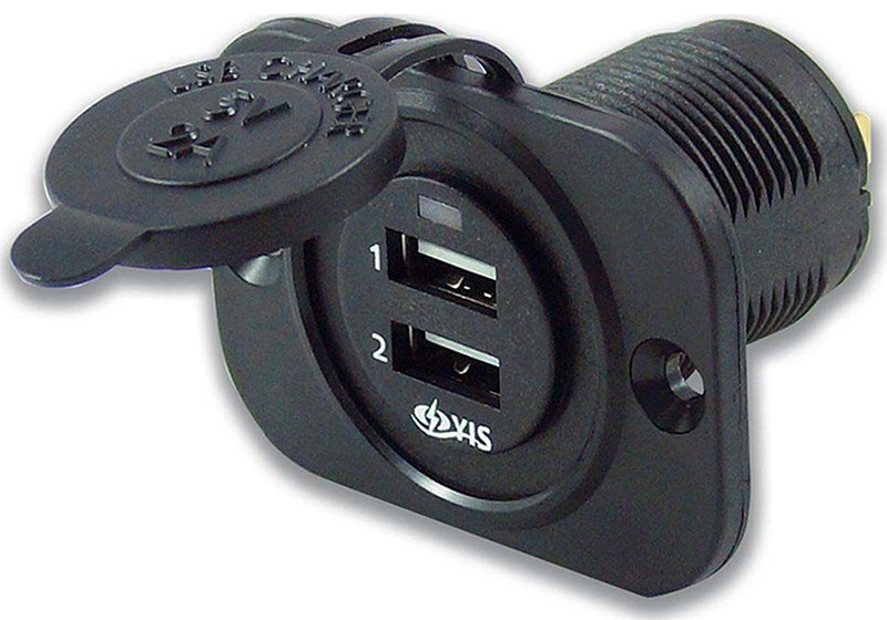 Με προστατευτικό καπάκι. Η πρώτη υποδοχή είναι κατάλληλη για συσκευές iPad και φορτίζει στην ταχύτητα των 2,1Α ενώ η δεύτερη υποδοχή είναι κατάλληλη για συσκευές smartphone όπως (HTC,SAMSUNG,SONY..κλπ) και φορτίζει στα 1Α.