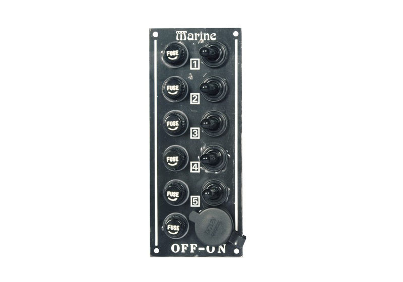 Από αλουμίνιο, με πέντε στεγανούς διακόπτες, παροχή αναπτήρα και ασφάλειες 5Amp- 12V DC. Με αναπτήρα και υποδοχή του.