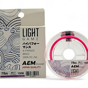 Ένα ολοκαίνουργιο νήμα πολύ χαμηλών διατομών από PE0.08 εως PE0.6 κατάλληλο για Micro Game, Ultra LRF & LRF. Το Light Game x4 της AEMD αποτελεί την πλέον εξειδικευμένη και ποιοτική πρόταση της εταιρείας για όλα τα ψαρέματα που χρειαζόμαστε πραγματικά πολύ λεπτές διατομές. Η όσο το δυνατόν στρογγυλή του διατομή σε συνδυασμό με την ολισθηρή επιφάνεια του νήματος, λόγω της διακριτικής του επικάλλυψης από κερί, έχουν ως αποτέλεσμα να πετυχαίνουμε πολύ μακρινές ρίψεις των ελαφριών τεχνητών δολωμάτων μας χρησιμοποιώντας το. Η πλέξη του αποτελείται από τέσσερις κλώνους Ιαπωνικού πολυαιθυλενίου ( JAPANESE PE MATERIAL ). Θα το βρείτε σε συσκευασία των 150 μέτρων. Οι διαστάσεις που είναι διαθέσιμο είναι ιδαίτερα λεπτές κάτι που το καθιστά ιδανικό για Ultra Light Rock Fishing. Διαθέσιμο σε 2 χρώματα Lime Green ή Lady Pink. Τα ιδιαίτερα χαρακτηριστικά του είναι: