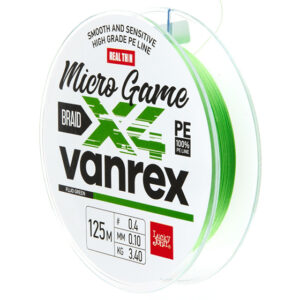 Η “οικογένεια” ποιοτικών και παράλληλα οικονομικών νημάτων Vanrex της Lucky John μεγαλώνει με ένα ολοκαίνουργιο νήμα πολύ χαμηλών διατομών από PE0.15 εως PE0.6 κατάλληλο για Micro Game, Ultra LRF & LRF. Το Vanrex X4 Micro Game αποτελεί την πλέον εξειδικευμένη και ποιοτική πρόταση της εταιρείας για όλα τα ψαρέματα που χρειαζόμαστε πραγματικά πολύ λεπτές διατομές. Η όσο το δυνατόν στρογγυλή του διατομή σε συνδυασμό με την ολισθηρή επιφάνεια του νήματος, λόγω της διακριτικής του επικάλλυψης από κερί, έχουν ως αποτέλεσμα να πετυχαίνουμε πολύ μακρινές ρίψεις των ελαφριών τεχνητών δολωμάτων μας χρησιμοποιώντας το. Η πλέξη του αποτελείται από τέσσερις κλώνους Ιαπωνικού πολυαιθυλενίου ( JAPANESE PE MATERIAL ). Θα το βρείτε σε συσκευασία των 125 μέτρων. Οι διαστάσεις που είναι διαθέσιμο είναι ιδαίτερα λεπτές κάτι που το καθιστά ιδανικό για Ultra Light Rock Fishing. Το χρώμα του είναι Fluo Green. Τα ιδιαίτερα χαρακτηριστικά του είναι: