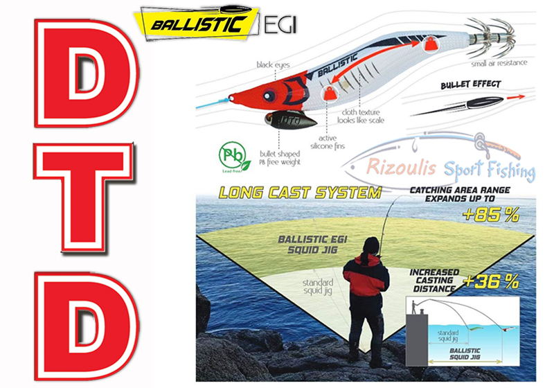 Επίσης η DTD έχει εξοπλίσει τις καλαμαριέρες Ballistic Full Color με φτερά σιλικόνης, τα οποία ζωντανεύουν με κάθε κίνηση του τεχνητού και βοηθούν στη ρεαλιστική απεικόνισή τους.