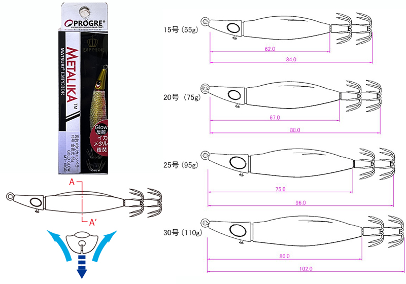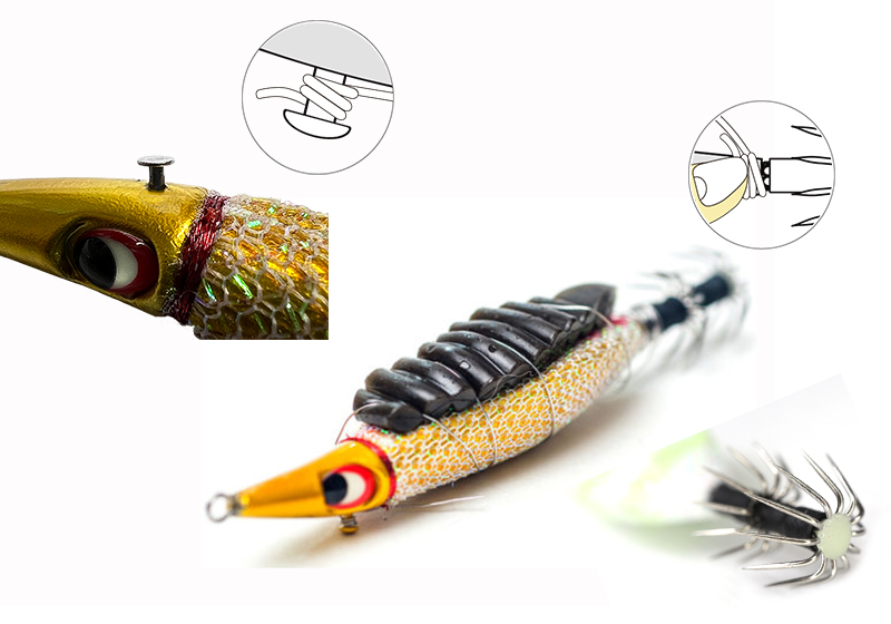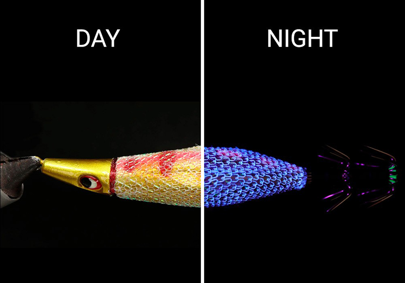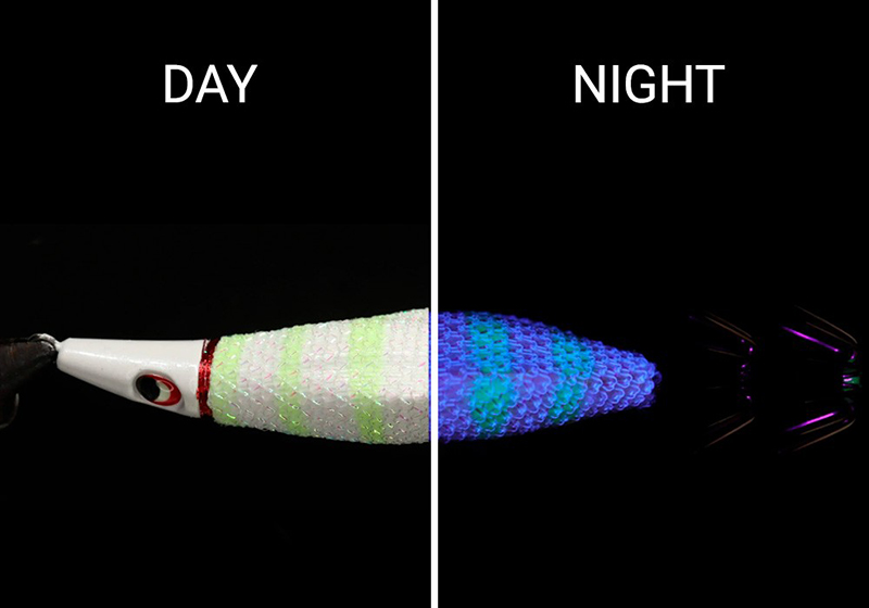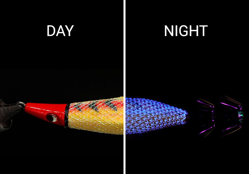 Στη θάλασσα σε βάθος όπου το ορατό φως δεν φτάνει, τα Keimura χρώματα αντανακλούν τις ακτίνες UV που περιέχονται στο φως του ήλιου για να προσελκύσουν ακόμα περισσότερο τα καλαμάρια, τα θράψαλα και τις σουπιές. Το σώμα έχει σχήμα ανεστραμμένου τριγώνου και το βάρος εκτίθεται προς τα έξω για να χαμηλώσει το κέντρο βάρους. Η κοιλιά προεξέχει πολύ προς τα πίσω και η πλάτη είναι πεπλατυσμένη, ώστε να μπορούωνα στερεωθούν εύκολα τα νωπά δολώματα. Τα γκίνια την άκρη τους είναι Glow. Τα μάτια (οι βολβοί των ματιών) είναι σχεδιασμένα να είναι Glow, αυξάνοντας την ένδειξη της παρουσίας τους στο σκοτάδι.