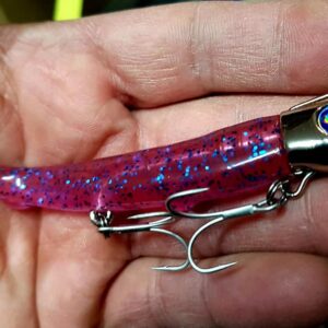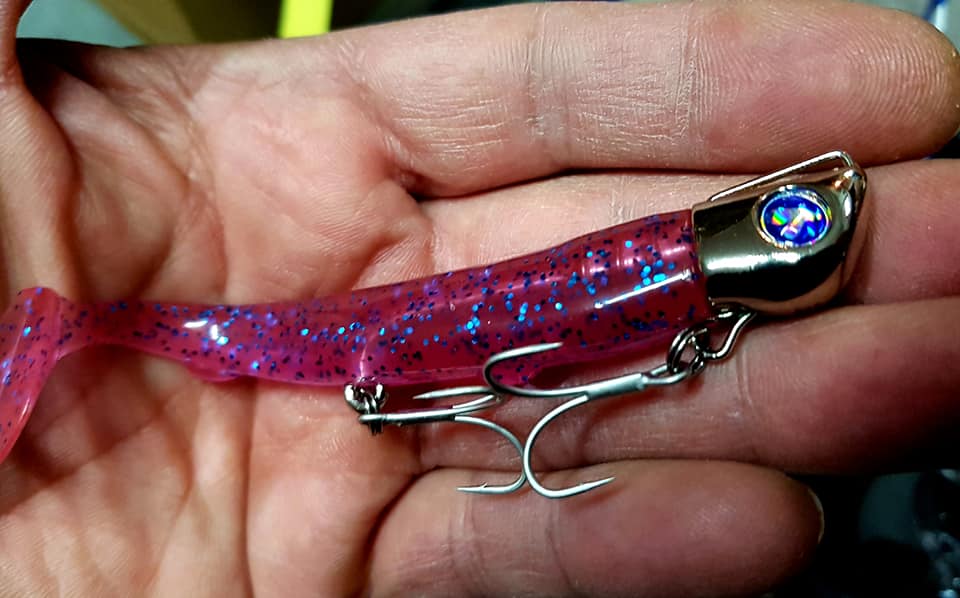 JOLTY 15! Πρόκειται για την νέα δημιουργία της εταιρείας BlueBlue μετά την επιτυχημένη έκδοση της Jolty 22!!. Είναι ένα combo σιλικόνης τύπου shad μήκους 4″ (10cm) σε συνδυασμό με jighead 15 γραμμαρίων. Το ιδιαίτερο αυτό jighead εχει κατασκευαστεί με τέτοιον τρόπο ώστε να μπορούν να τοποθετηθούν δύο σαλαγγιες στο κάτω μέρος του combo, η μια στο “κεφάλι” και η δεύτερη στο μέσον του σώματος της σιλικόνης. Χρησιμότητα αυτών των δύο σαλαγγιων είναι το σίγουρο κάρφωμα σε μια πιθανή επιθεση ψαριού, αφού θα μπορούσε να το συγκρίνει κανείς με κάποιο…. minnow ως προς την αποτελεσματικότητα του καρφωματος!!! Επίσης έχει δημιουργηθεί ένα εξόγκωμα στο σώμα της σιλικόνης, για να καρφώνουμε εκεί την μία μύτη της σαλαγιάς αν θέλουμε, ώστε να μήν σκαλώνει με ευκολία. Για αυτό το λόγο οι σαλαγιές έχουν τοποθετηθεί ανάποδα από ότι στα Minnow.