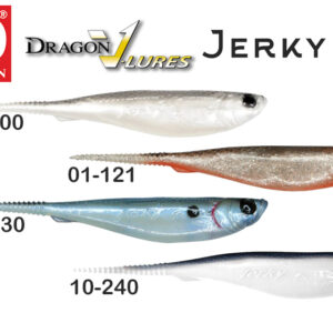Τα Jerky έχουν κλασικό σώμα ψαριού με ίσια ουρά όπως και άνοιγμα στην κοιλιά ώστε να κρύβεται το swimbait offset hook.