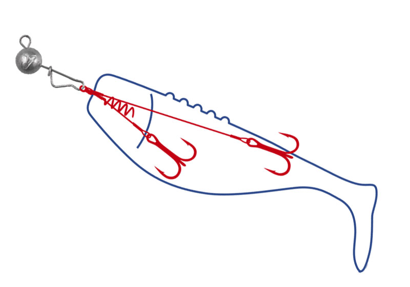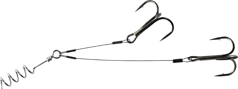 Διαθέτει δυο σαλαγιές No2 Black nikel δεμένες με ατσάλινο σύρμα 7χ7 της AFW σε μήκος από 40mm εώς 60mm (6 πόντους). Άρα μπορούμε να αρματώσουμε δολώματα από 7 πόντους και πάνω. Σαν δέσιμο διαθέτει ατσάλινο ελατήριο με θηλιά το οποίο βιδώνουμε στο στόμα του δολώματός μας. Οι σαλαγιές τοποθετούνται εξωτερικά
