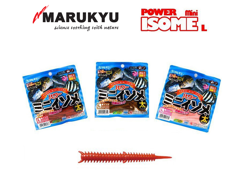 Μια νέα καινοτομία της Marukyu, είναι και το νέο μοντέλο Mini, σε μεγέθη Medium & Large όπου η διαφορά με το κλασσικό Power Isome είναι ότι έχει σχεδόν το μισό του μήκος, όλα τα υπόλοιπα χαρακτηριστικά του είναι ίδια. Το σκεπτικό πίσω από την ιδέα για την κατασκευή του, είναι καθαρά πρακτικό. Για παράδειγμα μπορούμε να χρησιμοποιήσουμε το Isome Mini στην καθετή από την βάρκα παρουσιάζοντας μια πιο αληθοφανή και φυσική εικόνα δολώματος πάνω στο αγκίστρι μας. Επίσης στην τεχνική του LRF μπορούμε να το χρησιμοποιήσουμε όταν τα ψάρια δεν είναι και τόσο ενεργά, δελεάζοντάς τους ένα πεντανόστιμο, μικρό και παχουλό σκουλήκι.