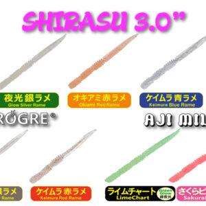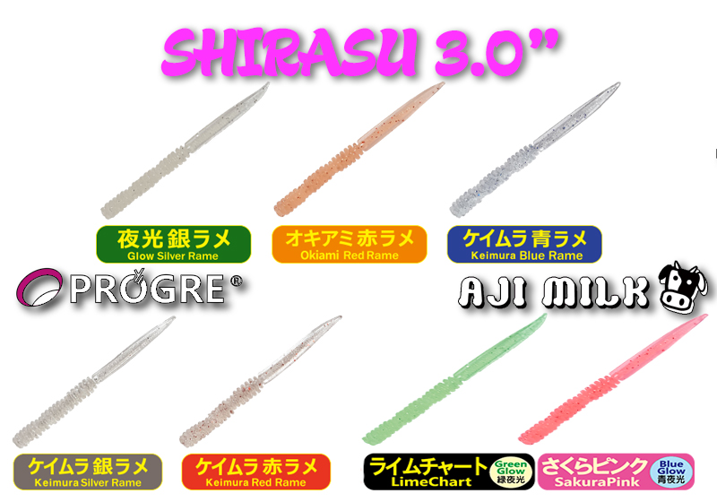 Το Shirasu από την σειρά Aji Milk λοιπόν είναι μία ειδικά σχεδιασμένη σιλικόνη τύπου slug μήκους 3.0 ίντσες δλδ 76mm για το συγκεκριμένο ψάρεμα και όχι μόνο!! Προσομοιάζει το κάποιο θαλάσσιο οργανισμό τύπου σκουληκιού που αποτελεί ένα από τα βασικά γεύματα των κοκκαλιών. Ο όγκος της εόναι 40% λιγότερος από ότι φαίνεται οπτικά εξαιτίας των ραβδώσεων που έχει. Οι ραβδώσεις αυτές δημιουργούν μικροδονήσεις στο νερό που προσελκύει τα ψάρια αλλά παράλληλα κάνουν το Shirasu ιδιαίτερα εύκαπτο κάτι που το καθιστά ιδανικό και για bottom fishimg!! Επίσης μπορεί να αλλάξει μήκος χάρις σε τρείς ειδικές εγκοπές που έχει στο σώμα του και από 3,0 ίντσες να γίνει 2.5, 2.0 ή 1.5 ίντσες πολύ εύκολα αν κρίνουμε ότι χρειαζόμαστε μικρότερου μεγέθους δόλωμα για τα ψάρια που στοχεύουμε.