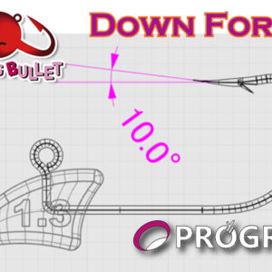 Το αγκίστρι είναι χημικά ακονισμένο, με αντιδριαβρωτική επίχρυση επίστρωση και έχει διάμετρο σύρματος 0.51mm στα μικρά μεγέθη μεχρι 1.5g και 5 τμχ στην συσκευασία. Ενώ στα μεγαλύτερα 0.60mm και 4 τεμάχια στην συσκευασία. Ο κρίκος πρόσδεσης με την παραμάνα μας βρίσκεται σε γωνία 10° προς τα πίσω από το κέντρο του Jighead και έχει μελετηθεί έτσι ώστε να καρφώνει άμεσα ακόμα και με την παραμικρή κόντρα εξαιτίας του μοχλού που κάνει με την τάση που του ασκούμε εμείς κατά την ανάκτηση. Το αρπάδι του αγκιστριού έχει μια αμβλεία γωνία προς τα επάνω και δεν είναι παράλληλο με τον κορμό για να μπορεί να καρφώσει λίγο πιο εσωτερικά στο ευαίσθητο στόμα των κοκκαλιών στην περιοχή του ουρανίσκου και όχι στα χείλη που όπως γνωρίζουμε όλοι σχίζονται πολύ εύκολα με αποτέλεσμα τα πολλά χαμένα ψάρια όπως με άλλα jighead.