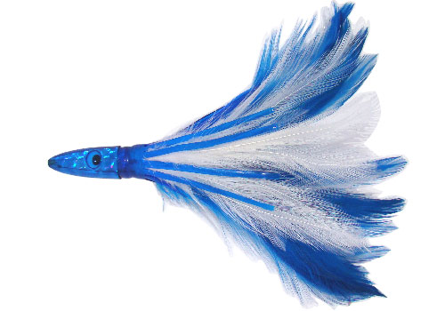 - Διάφανο πρισματικό σώμα με κινητά μάτια από σκληρό πλαστικό, πλοκάμια καλαμαριού που καταλήγουν σε πολύχρωμα φτερά συνθέτουν ένα πολλύ καλό δόλωμα κυρίως για μεγάλα τονοειδή